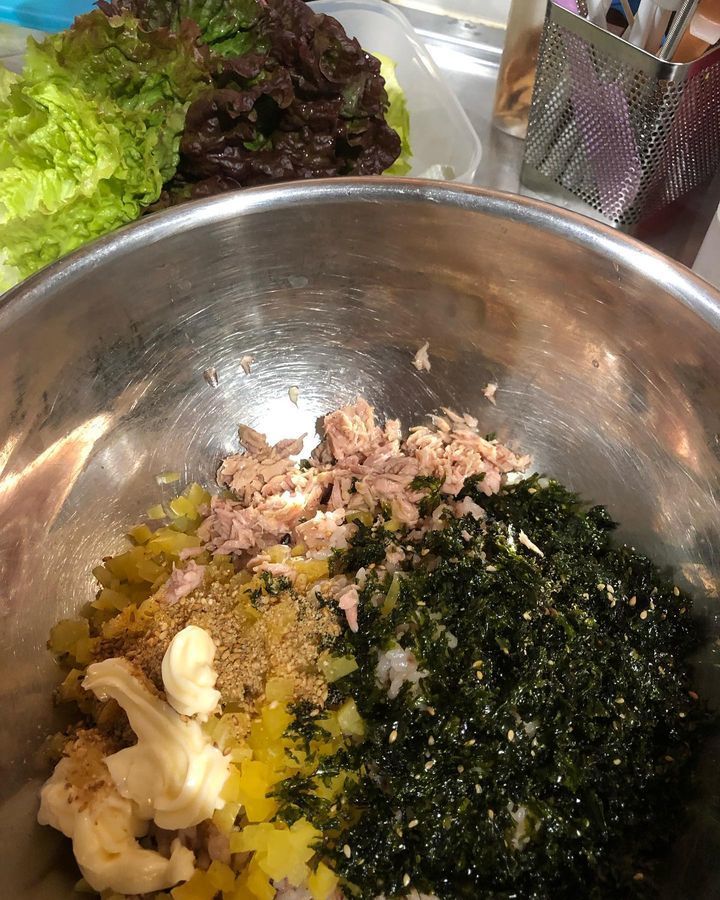 本来ならトビコを入れるところ、シーチキンで旨味を追加しています〜〜😊美味しいので食べに来てね〜